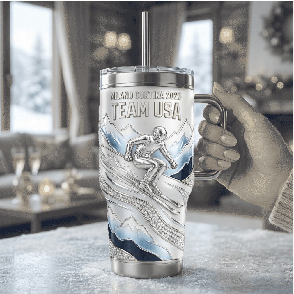 (Team USA Milano Cortina 2026 Winter Olympics Silver Relief Tumbler)Team USA Milano Cortina 2026 Winter Olympics Silver Relief Tumbler, Treat yourself or make a great gift for your loved ones
