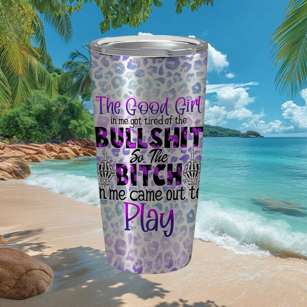 (The Bitch In Me Came Out To Play Leopard Print Skull Middle Finger Tumbler)