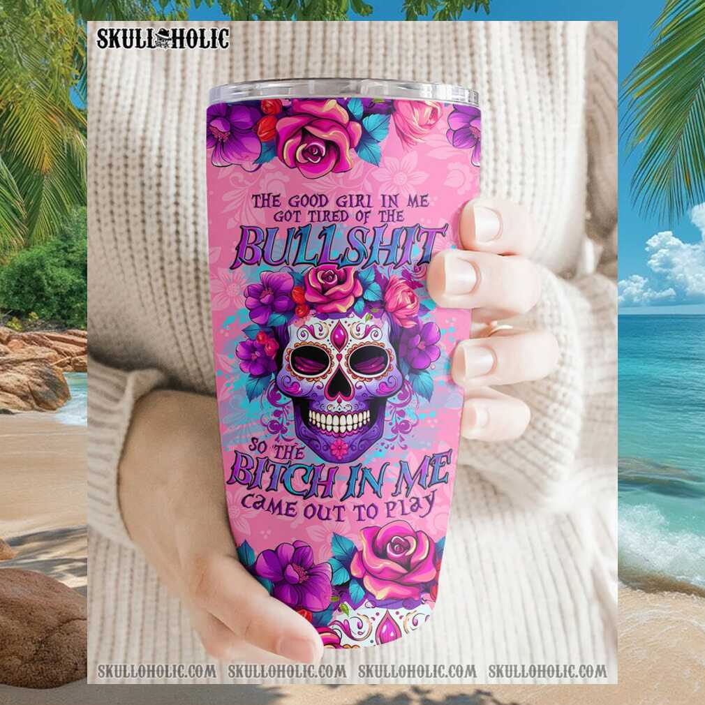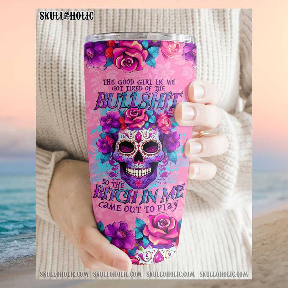 (The Good Girl In Me Got Tired Of The Bullshit Pink Floral Skull Tumbler)