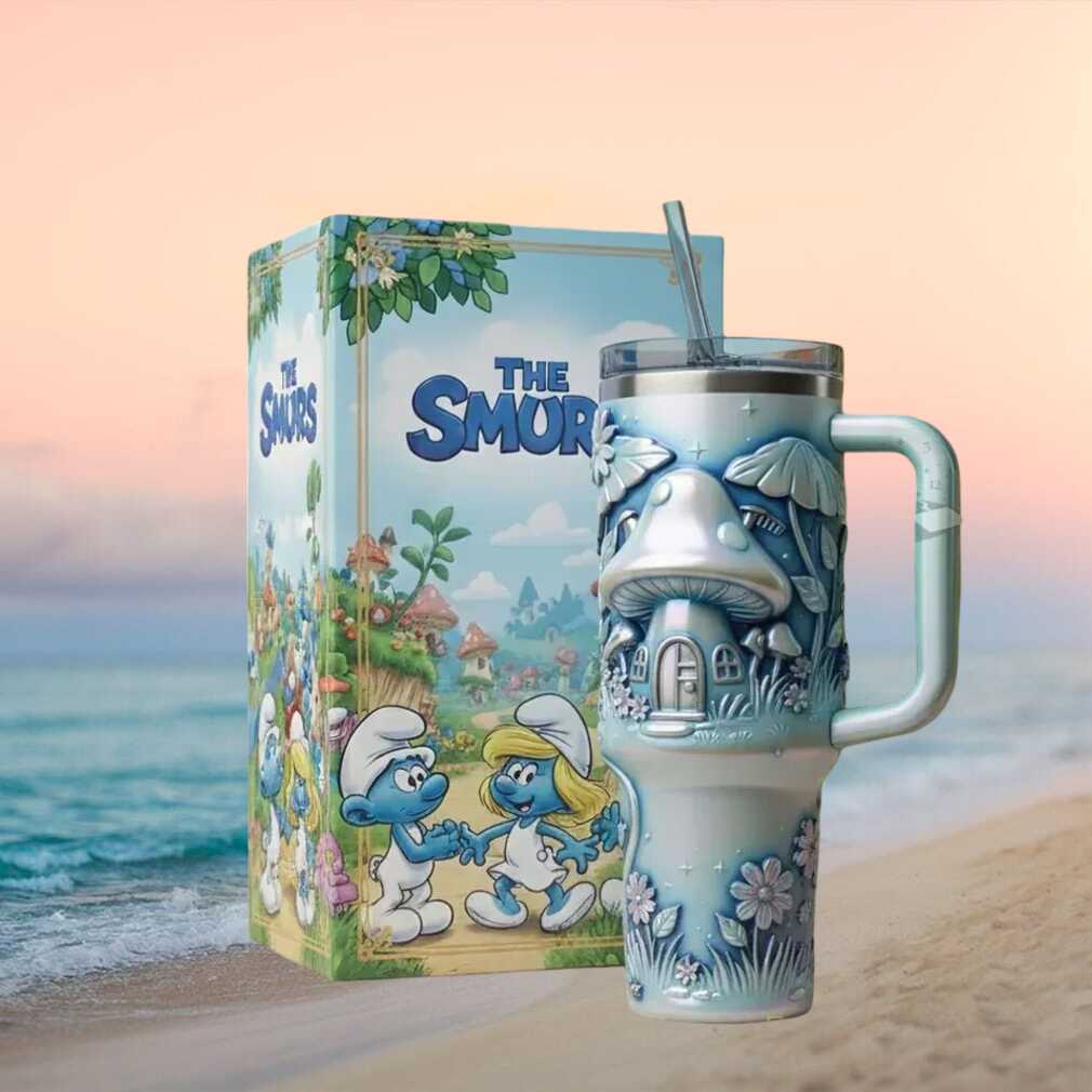 🥤 About The Smurfs 3D Mushroom House Embossed Scenic 40oz Tumbler