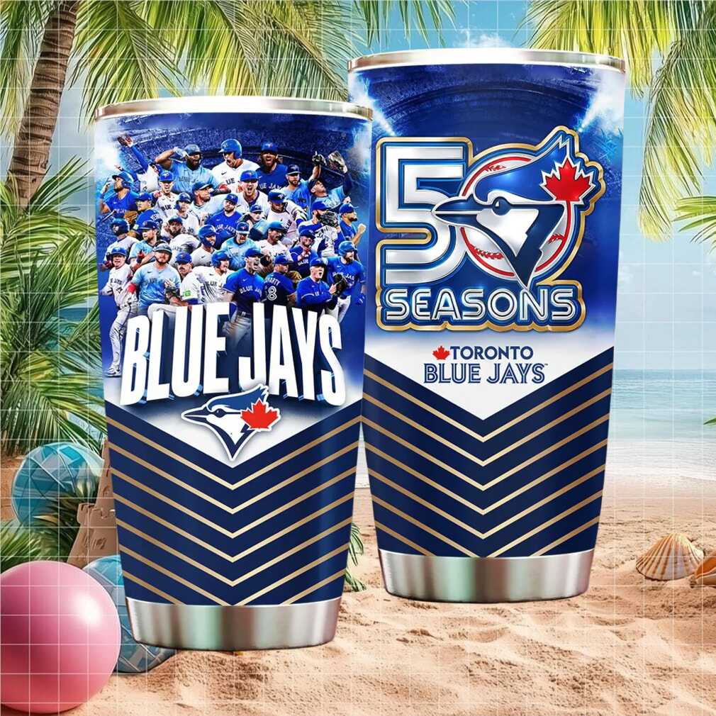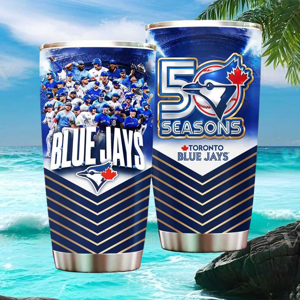(Toronto Blue Jays 50 Seasons Anniversary Baseball Team Graphics Tumbler)Toronto Blue Jays 50 Seasons Anniversary Baseball Team Graphics Tumbler, Treat yourself or make a great gift for your loved ones