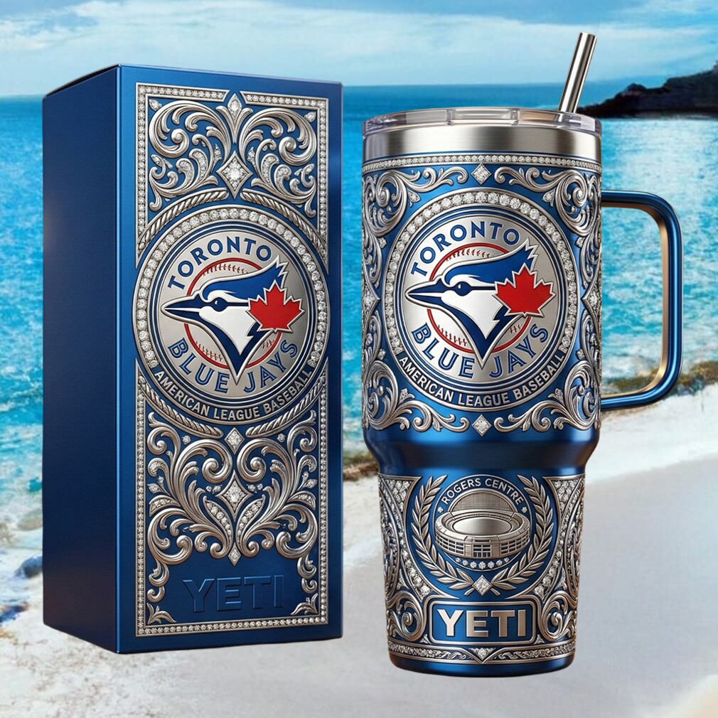 (Toronto Blue Jays Signature 40oz Tumbler Silver & Blue Rogers Centre Design)Toronto Blue Jays Signature 40oz Tumbler Silver & Blue Rogers Centre Design, Treat yourself or make a great gift for your loved ones