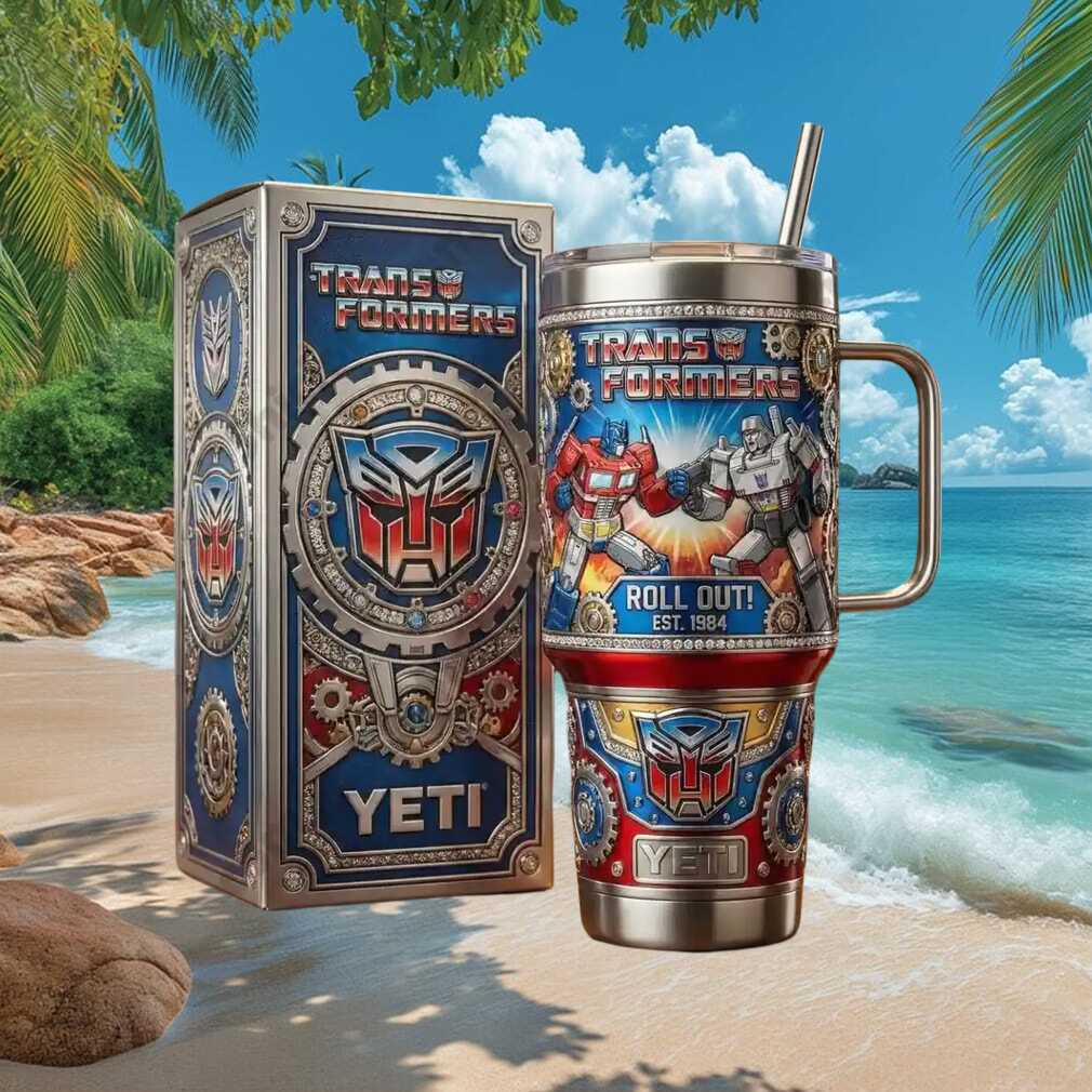 Autobots, roll out — to your kitchen cabinet! This epic Transformers Optimus Prime vs. Megatron 3D tumbler brings the ultimate battle between good and evil to life in stunning three-dimensional design. Celebrating over 40 years of the beloved franchise since 1984, this premium stainless steel collector’s piece features classic Generation 1 artwork. Double-wall insulation keeps your drinks more than meets the eye. A must-have for every Transformers fan from the original generation.