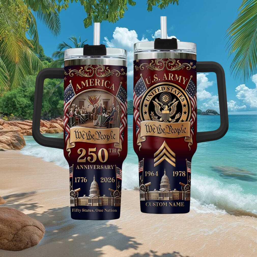 🥤 About U.S. Army 250th Anniversary Personalized 40oz Tumbler Patriotic Military We The People Custom Soldier Gift