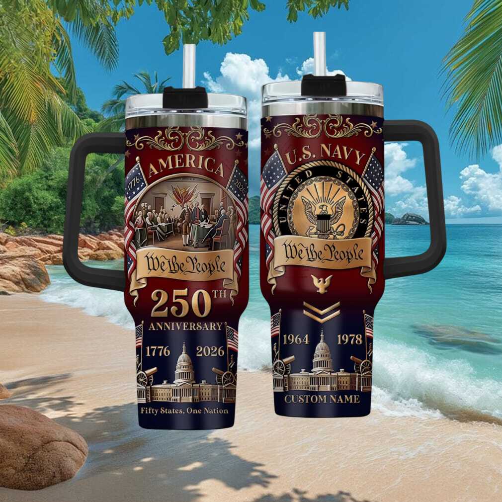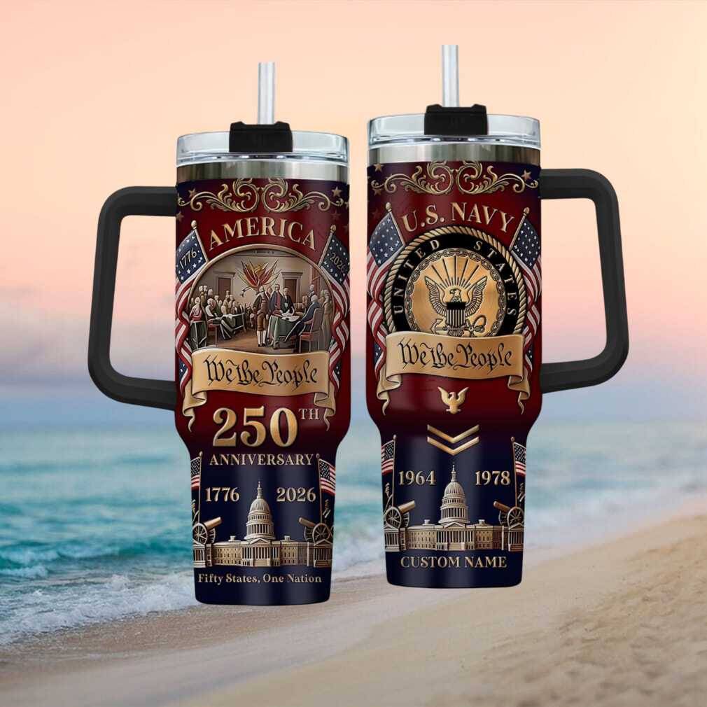 🥤 About U.S. Navy 250th Anniversary Personalized 40oz Tumbler USN We The People Patriotic Veteran Gift
