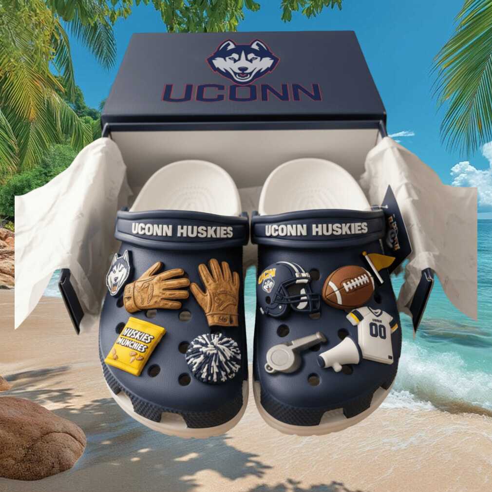 (UConn Huskies Football Fan Crocs with Sports Charms)UConn Huskies Football Fan Crocs with Sports Charms, Treat yourself or make a great gift for your loved ones