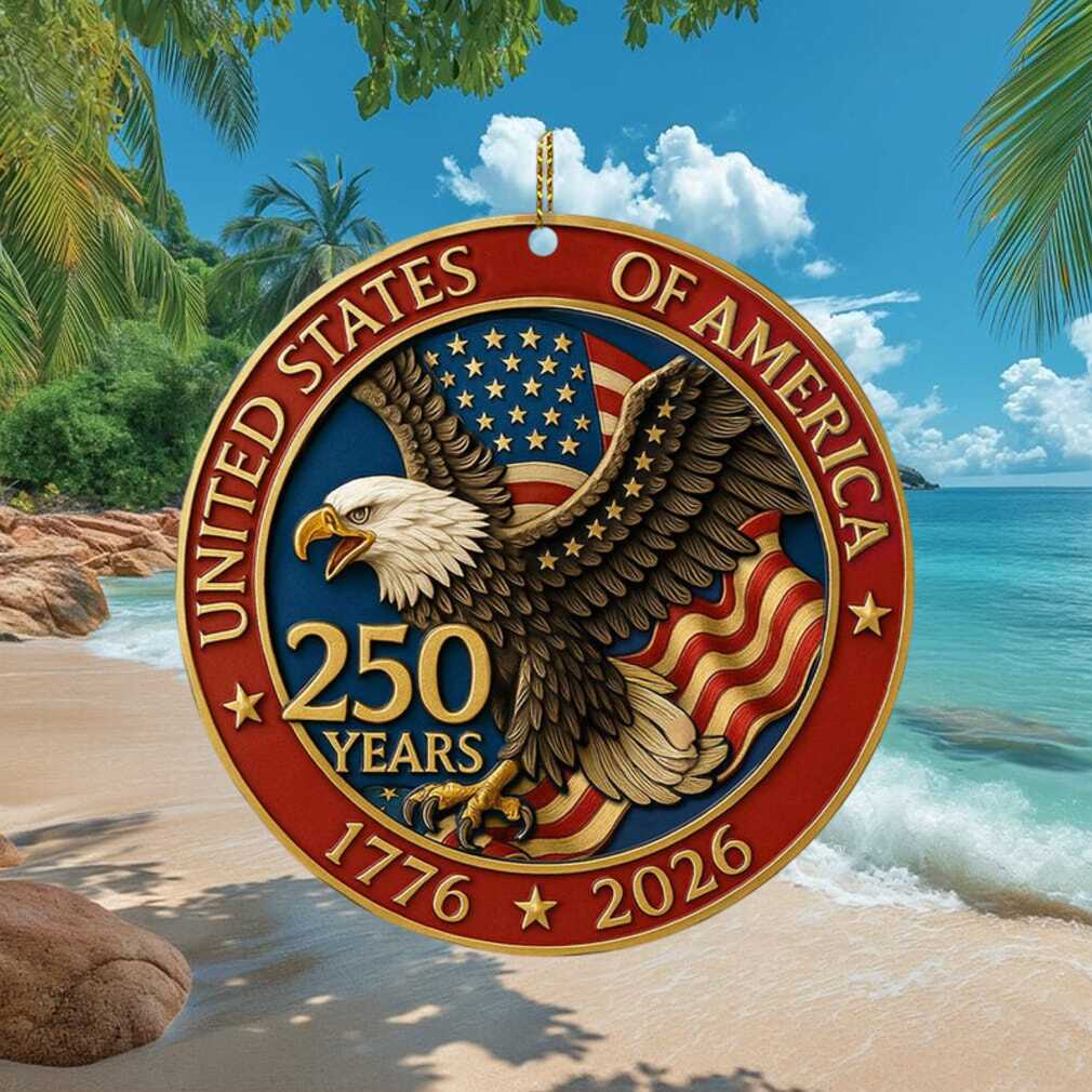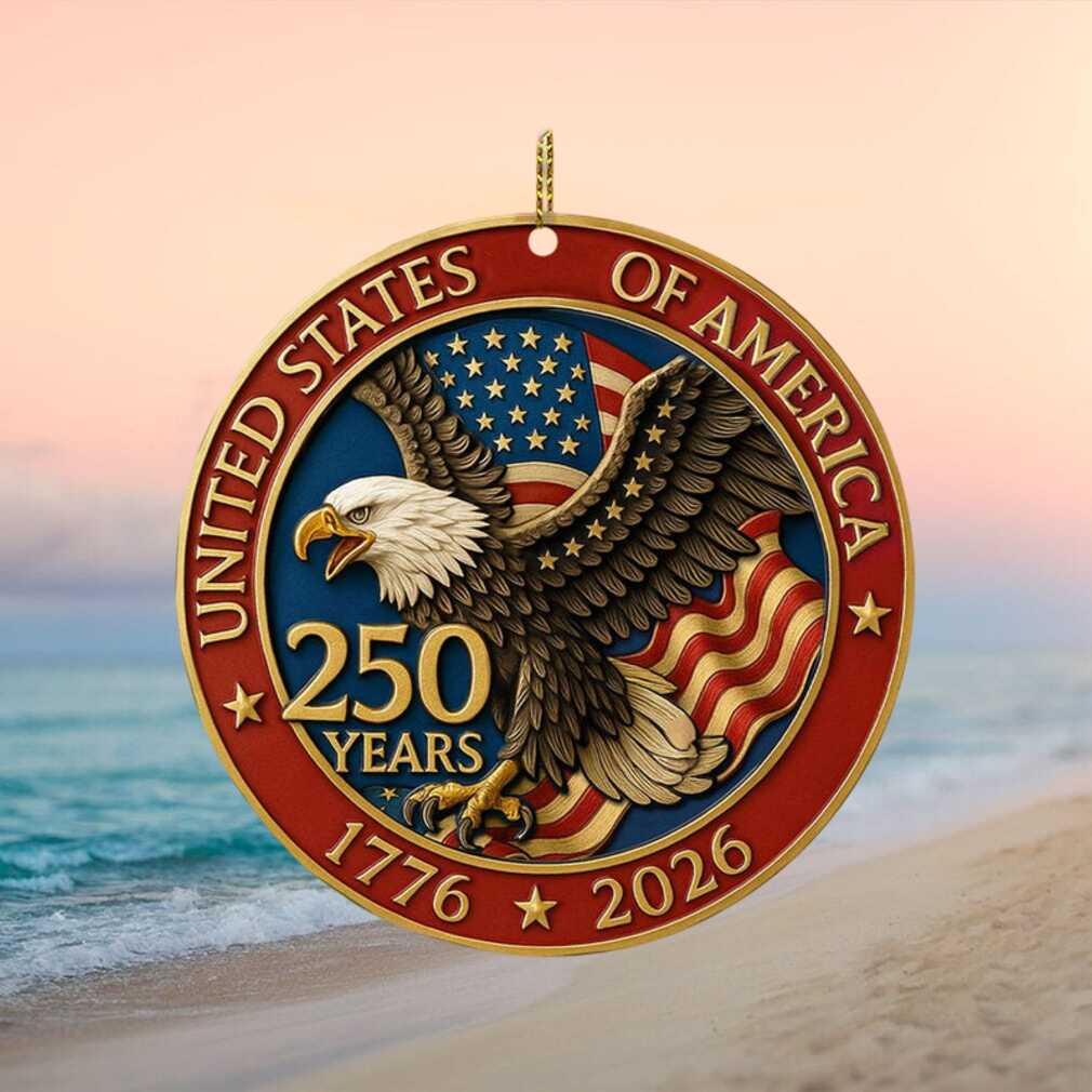 This beautifully round ornament featuring a patriotic eagle commemorates 250 years of the United States of America (1776–2026). Its circular form and classic design make it a versatile decorative piece for any setting.