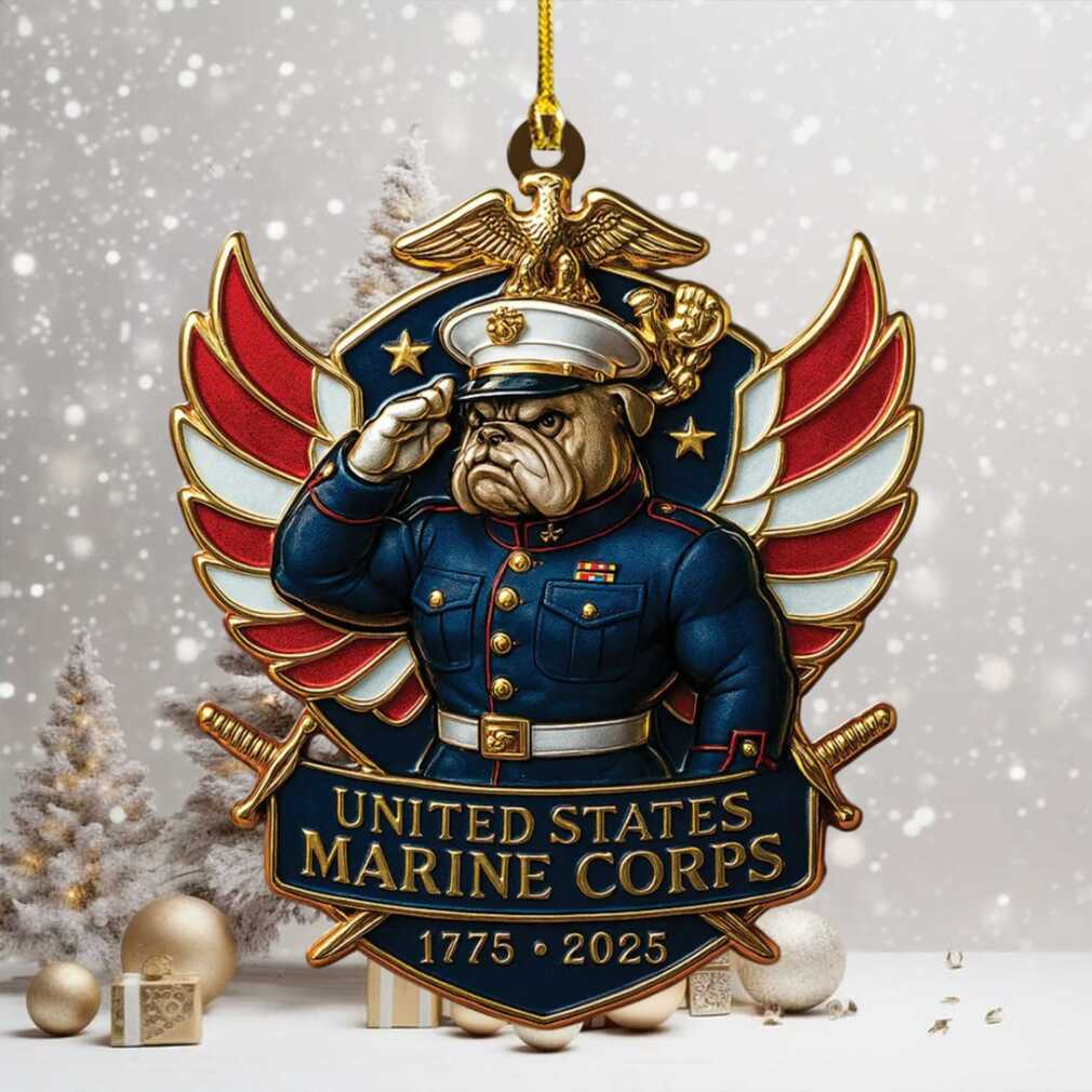 Show your pride in the US Marine Corps with this custom-shaped 2025 ornament. Perfect for active duty Marines, veterans, and proud family members, this ornament is a great way to honor the dedication and sacrifice of those who serve. Hang it on your Christmas tree, display it year-round, or give it as a thoughtful gift!
