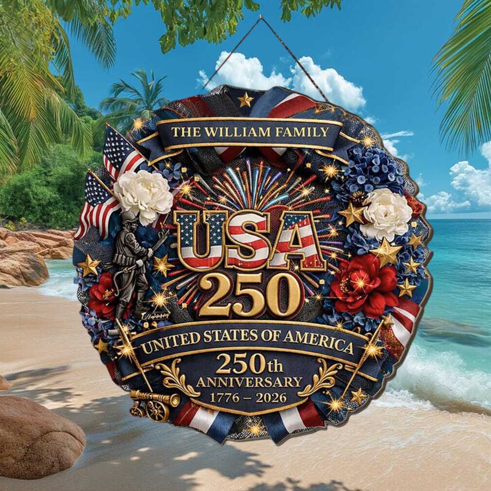 🥤 About USA 250th Anniversary Patriotic Floral Wreath Custom Family Ornament