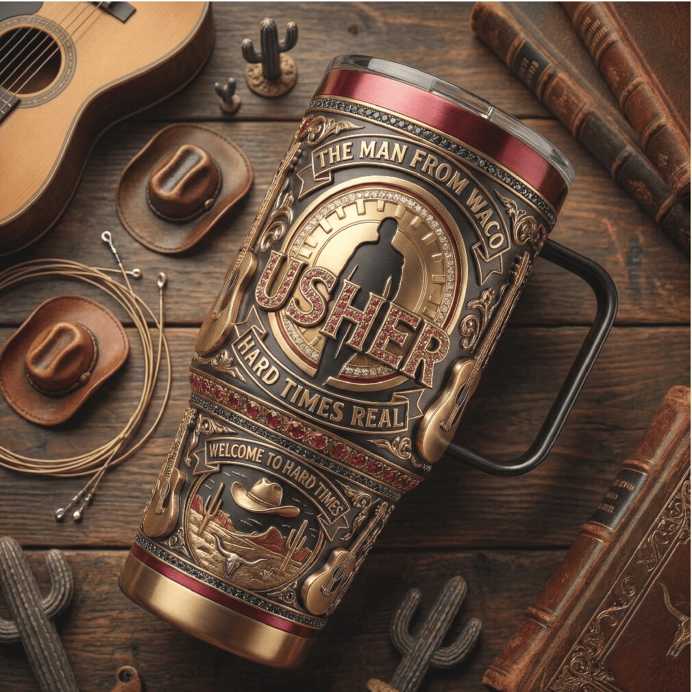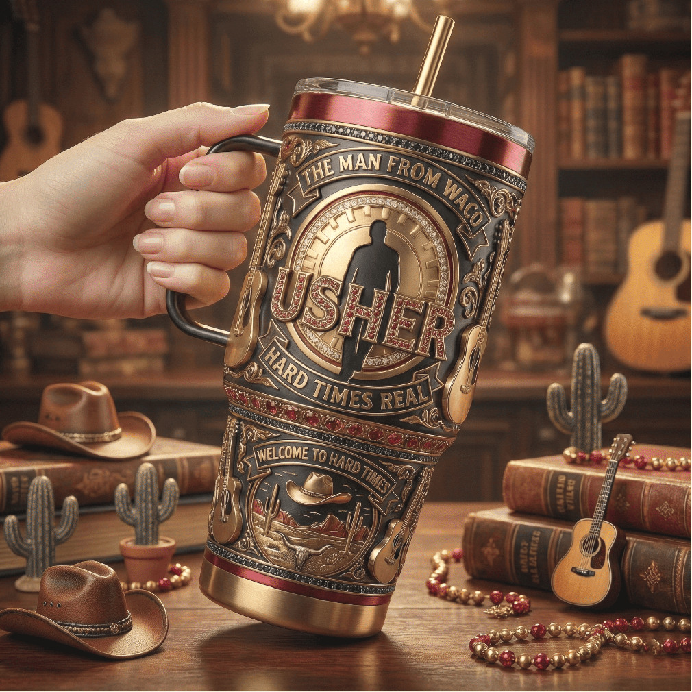 (Usher The Man From Waco Hard Times Real Country Blue 40oz Tumbler)Usher The Man From Waco Hard Times Real Country Blue 40oz Tumbler, Treat yourself or make a great gift for your loved ones