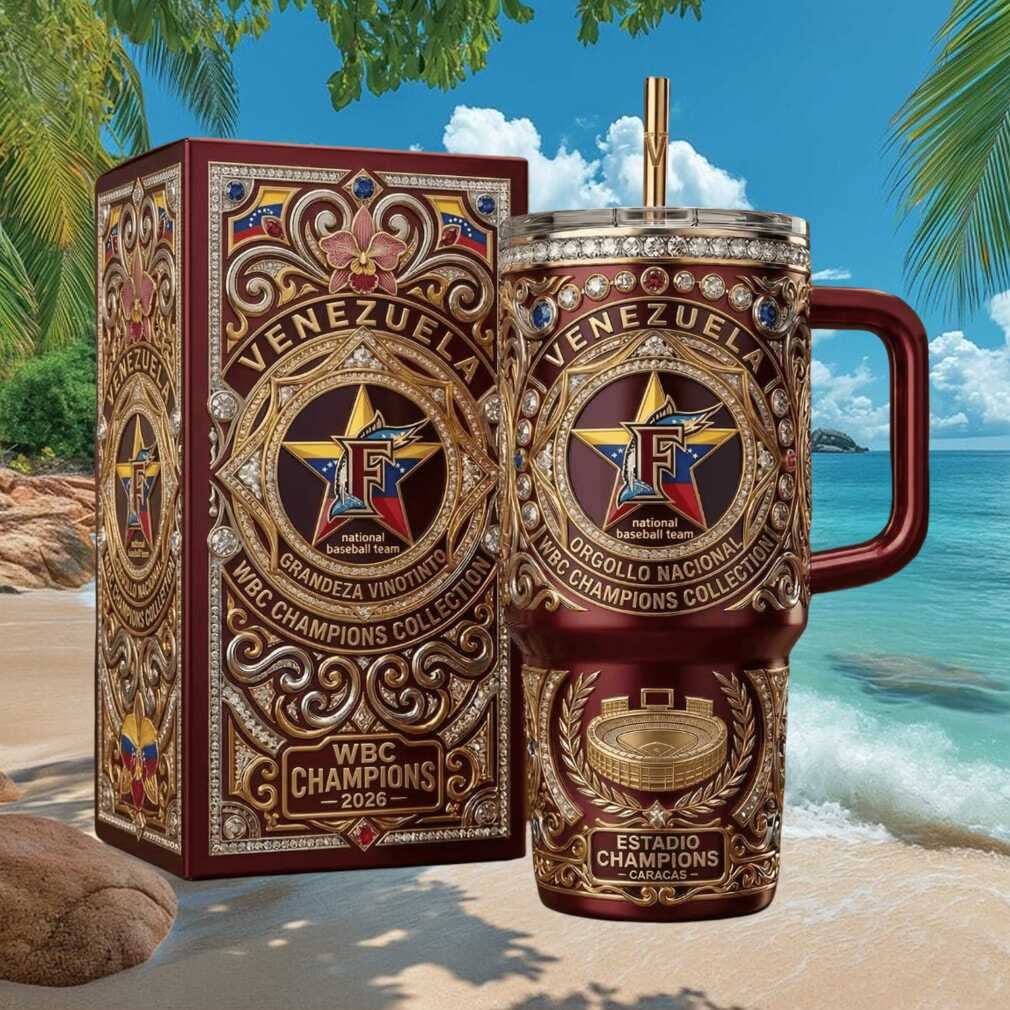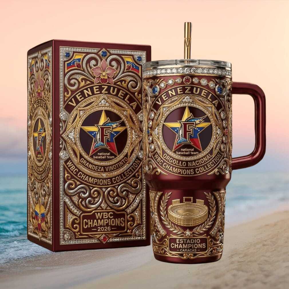 Celebrate Venezuela’s World Baseball Classic Championship with this ornate gold and maroon 2026 Orgullo Nacional tumbler. Featuring national team pride design with luxurious gold detailing and rich maroon colors. This 40oz premium stainless steel tumbler is a collector’s must-have for every Venezuelan baseball fan. ¡Arriba Venezuela!