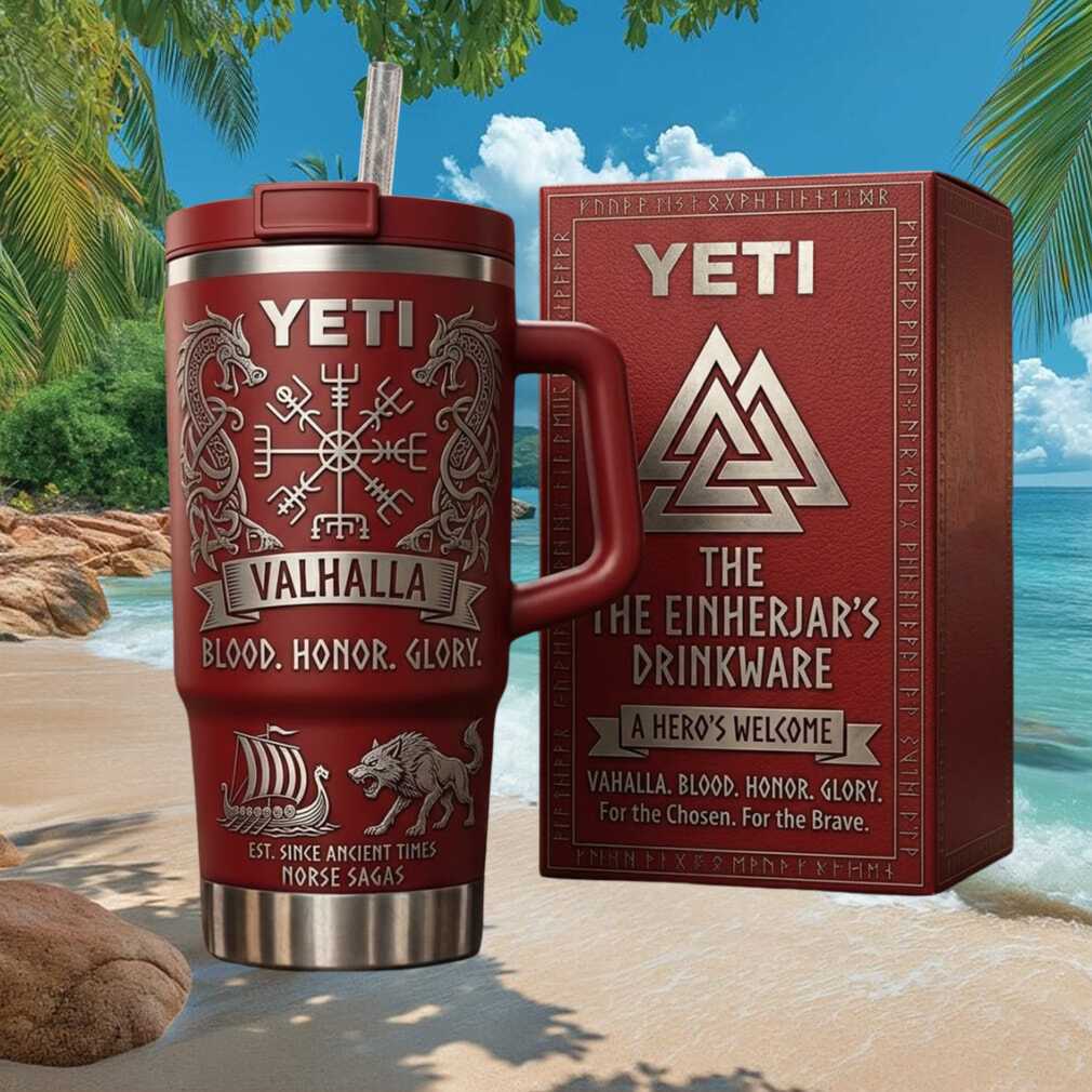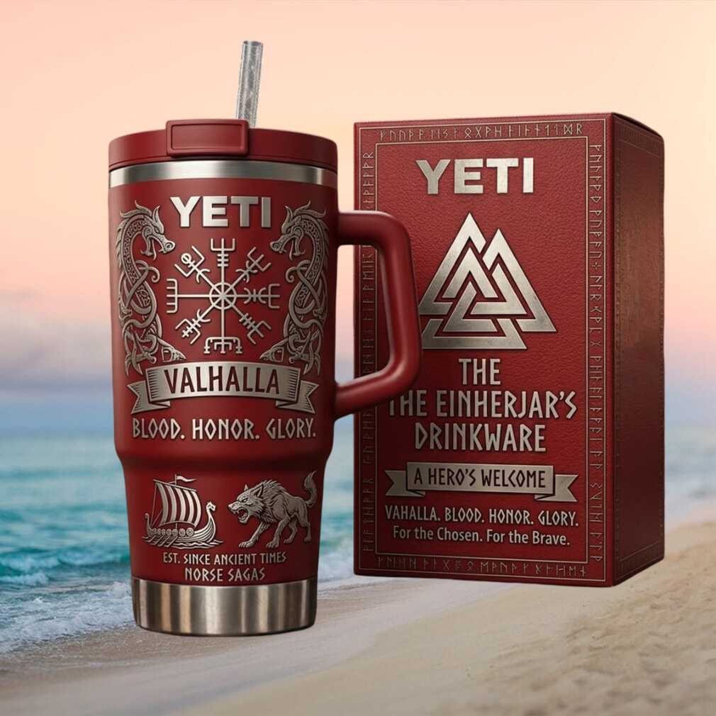Drink like a warrior of Valhalla! This Norse mythology engraved Yeti tumbler features bold Viking imagery fit for the halls of Odin. A powerful gift for lovers of Norse legend and warrior spirit.