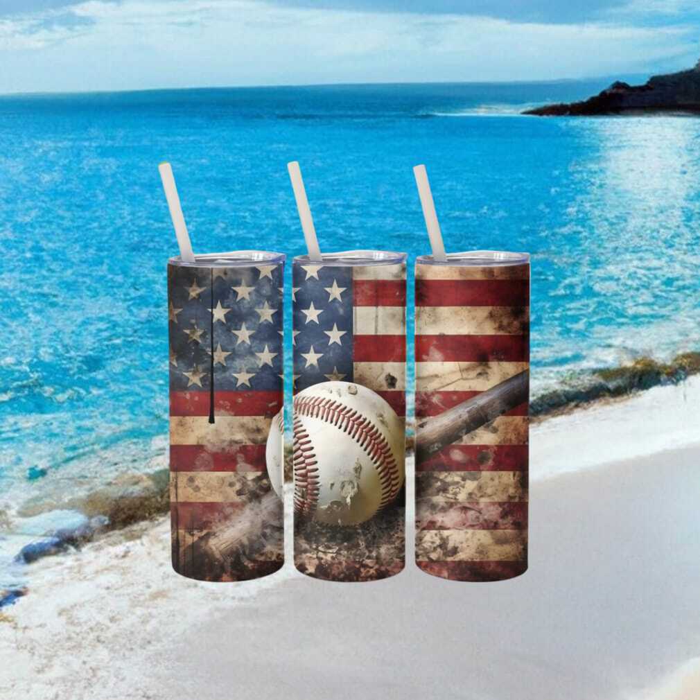 (Vintage American Flag Baseball and Bat Grunge Style Tumbler)Vintage American Flag Baseball and Bat Grunge Style Tumbler, Treat yourself or make a great gift for your loved ones