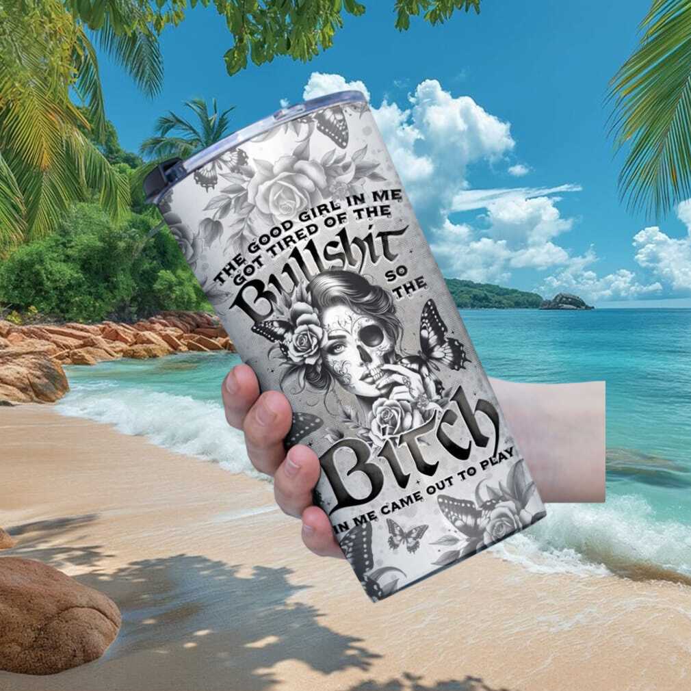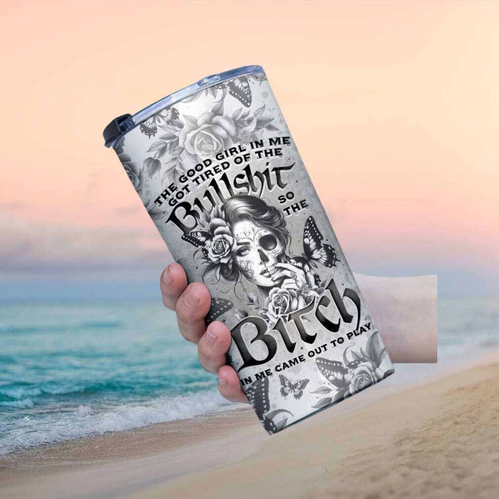 🥤 About Vintage Black & White Floral “Good Girl vs Bitch” Skull Tumbler
