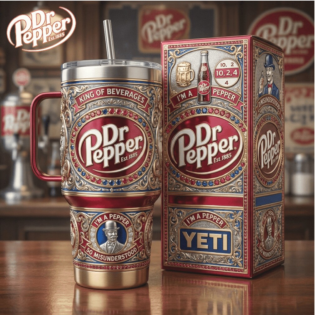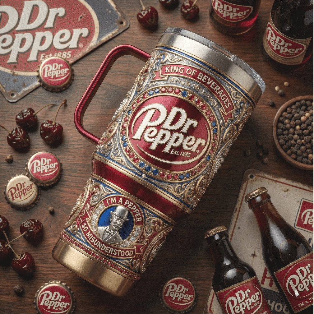 (Vintage Dr Pepper King of Beverages 40oz Tumbler Embossed Design)Vintage Dr Pepper King of Beverages 40oz Tumbler Embossed Design, Treat yourself or make a great gift for your loved ones