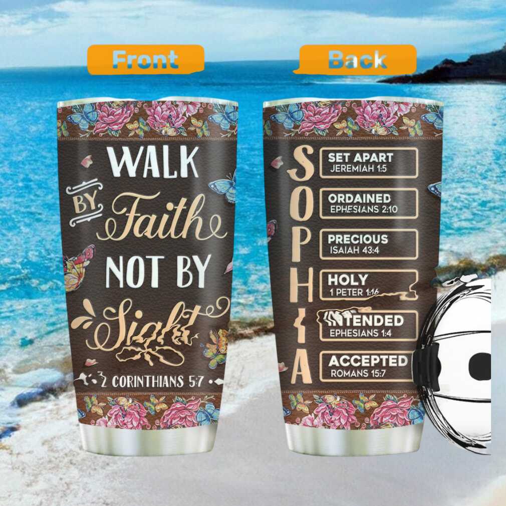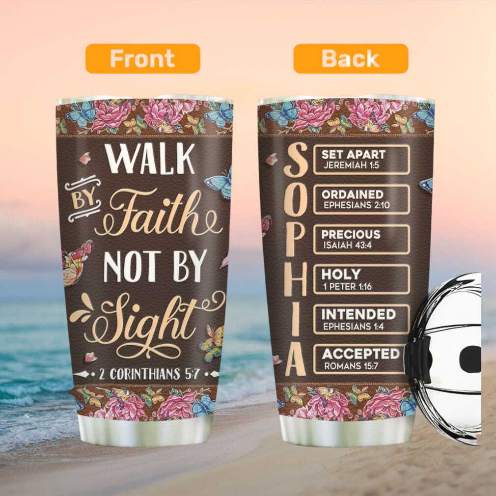(Walk by Faith Not by Sight Personalized Butterfly & Floral Leather Look Tumbler)Walk by Faith Not by Sight Personalized Butterfly & Floral Leather Look Tumbler, Treat yourself or make a great gift for your loved ones