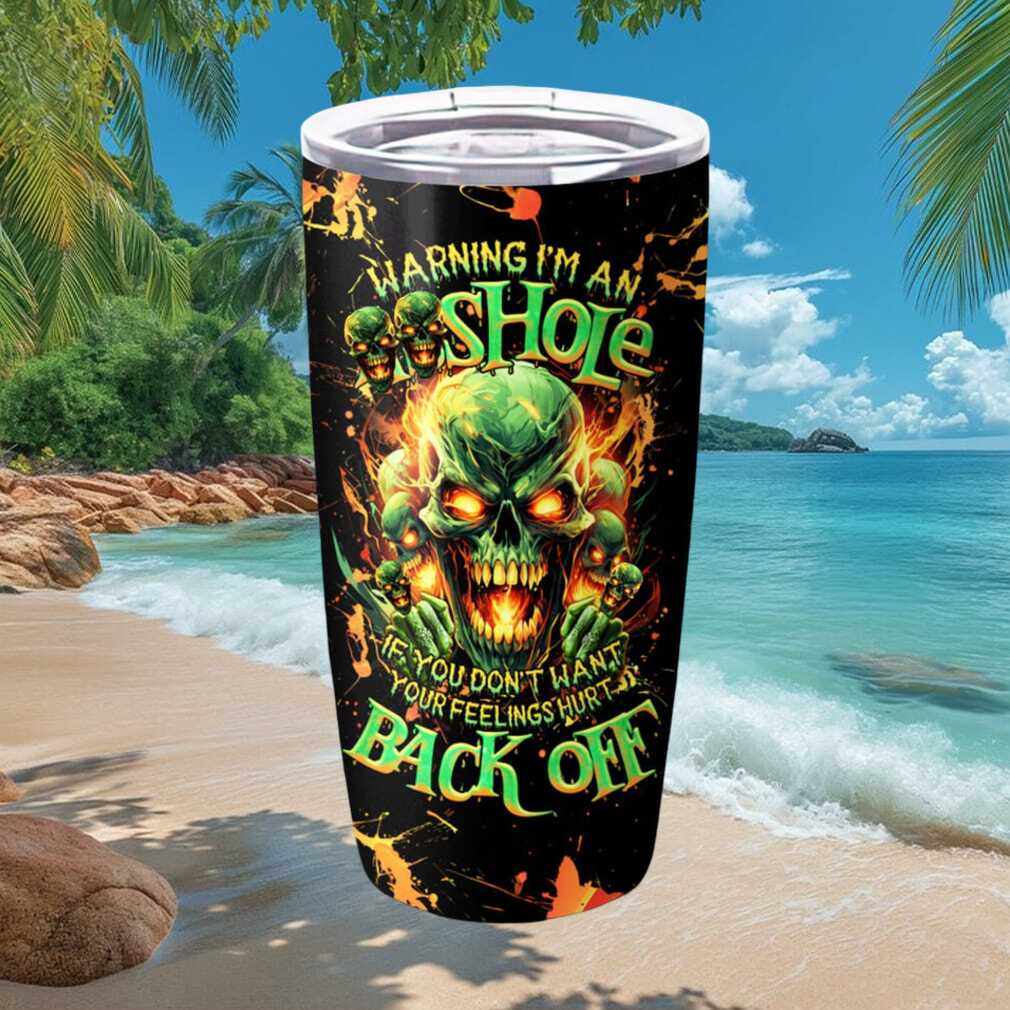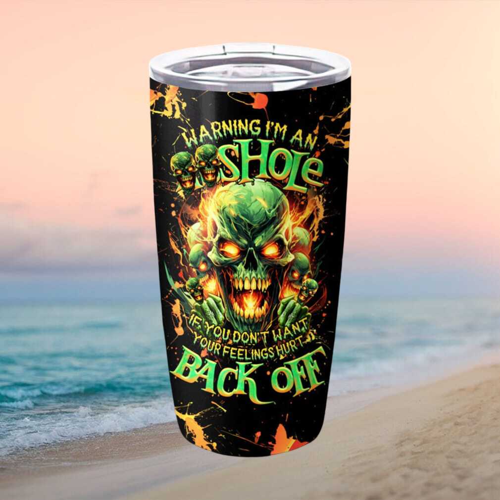 (Warning I’m An Asshole Back Off Green Flaming Skull Tumbler)