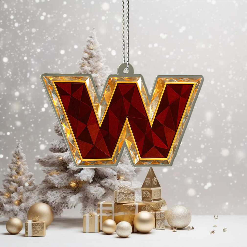 This ornament features the Washington Commanders’ “W” logo, beautifully adorned with shimmering jewels. Imagine the lights of your Christmas tree catching the facets of this ornament, creating a dazzling display of team spirit! It solves the problem of boring, generic ornaments and is ideal for Commanders fans who appreciate a touch of elegance. Crafted with attention to detail and durable materials, this ornament is sure to become a treasured keepsake. Its size is perfect for hanging on any size Christmas tree or using as a decorative accent.