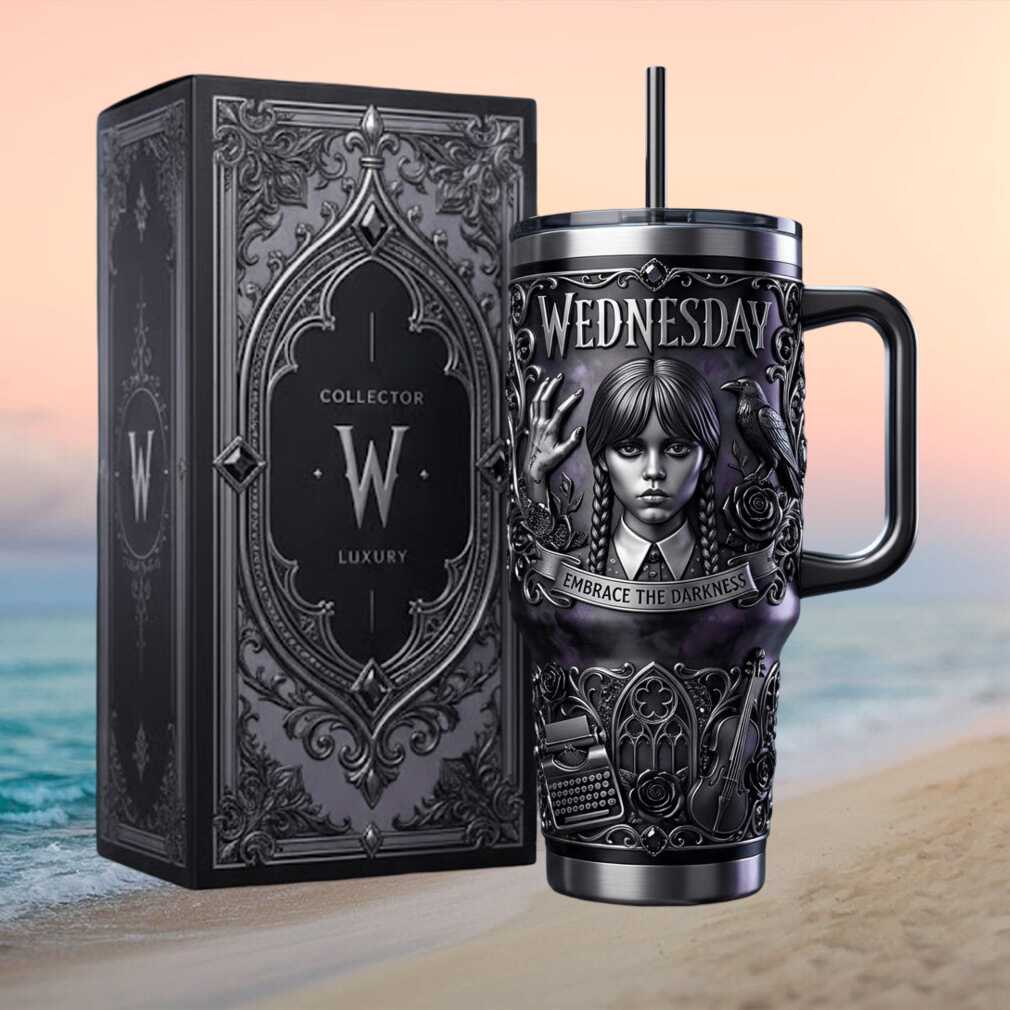 (Wednesday Addams “Embrace The Darkness” Luxury Collector Tumbler 3D Gothic Embossed Stainless Steel Travel Tumbler)Wednesday Addams “Embrace The Darkness” Luxury Collector Tumbler 3D Gothic Embossed Stainless Steel Travel Tumbler, Treat yourself or make a great gift for your loved ones