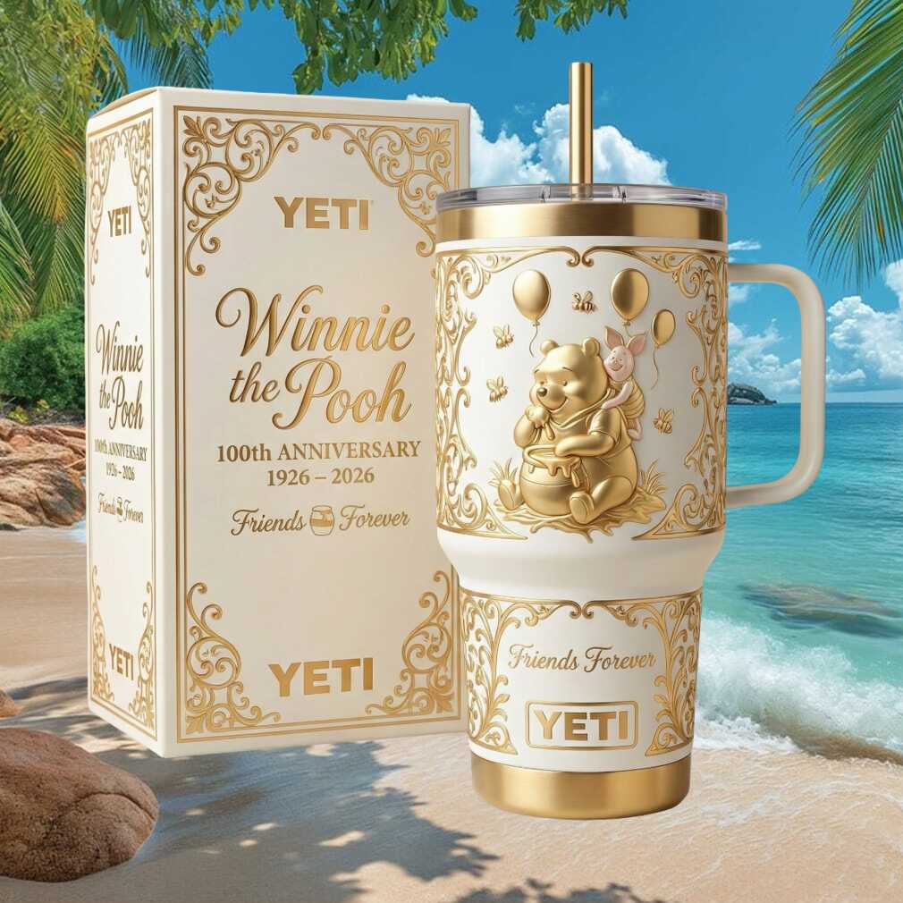 🥤 About Winnie the Pooh 100th Anniversary Gold & White 3D Luxury Tumbler