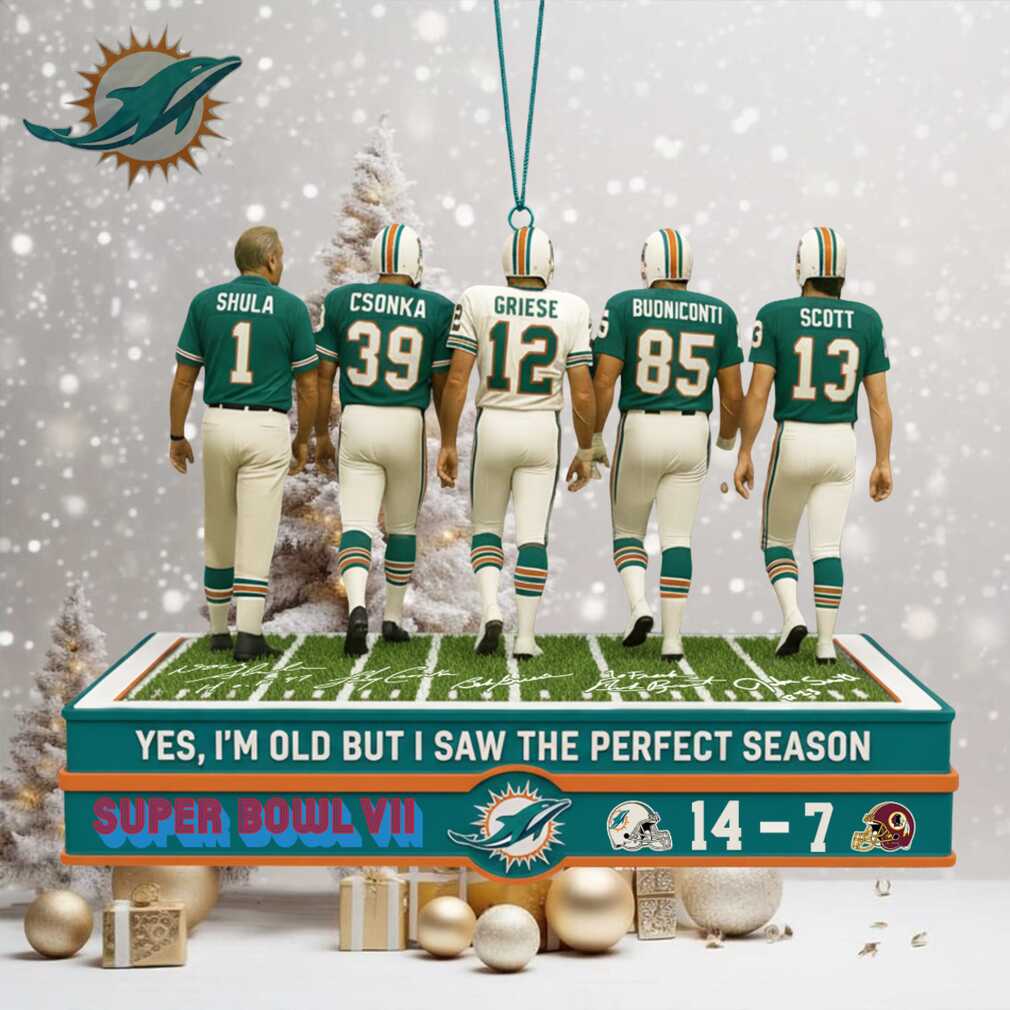 Relive the glory days of the ’72 Miami Dolphins every Christmas! This “Yes, I’m Old But I Saw The Perfect Season” ornament isn’t just a decoration; it’s a badge of honor for those who witnessed history. Imagine the stories and memories this ornament will spark as it hangs on your tree, a testament to the greatest season in NFL history. Perfect for the die-hard Dolphins fan who has seen it all.
