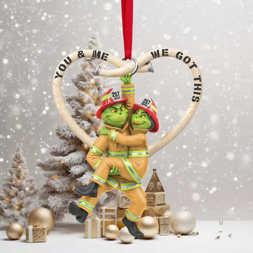 Picture this: a cozy home, twinkling lights, and a symbol of unwavering love hanging on the Christmas tree. This “You & Me, We Got This” Playful Firefighter Couple Hanging Ornament isn’t just a decoration; it’s a celebration of the brave hearts who run towards danger, a testament to their unbreakable bond, and a heartwarming addition to any firefighter’s holiday season.