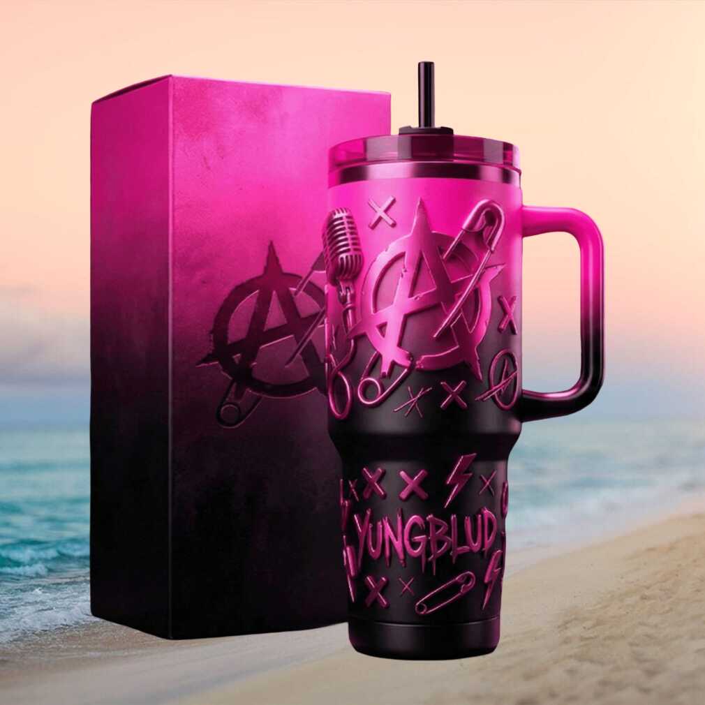 🥤 About YUNGBLUD Signature 3D Pink & Black Anarchy Symbol Tumbler Alt Rock Fan Collectible